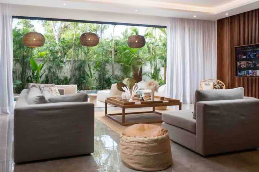 Guests staying at the villa also receive exclusive benefits at Mia Beach Club. Through this partnership, visitors enjoy a reduced minimum consumption of 1000 pesos per person on food and beverages instead of the standard higher requirement. Guests also receive a welcome drink upon arrival and a 10 percent discount on dinner reservations at the beach club.