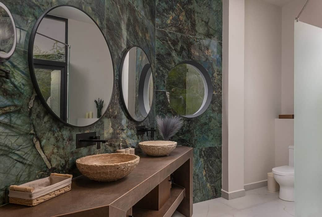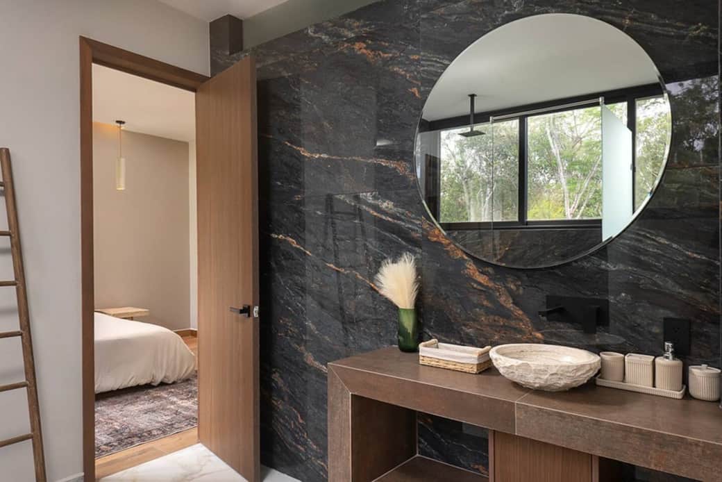 The master suite (ground floor) is a true retreat, featuring a unique outdoor black stone bathtub for a spa-like experience under the sky.